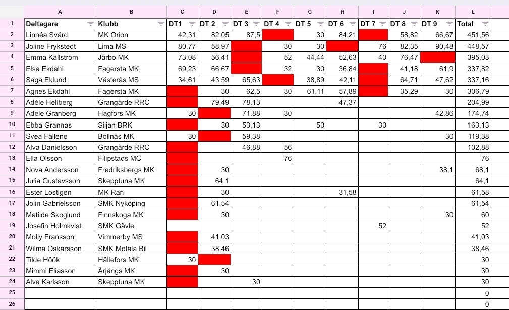 Resultat tjejcup